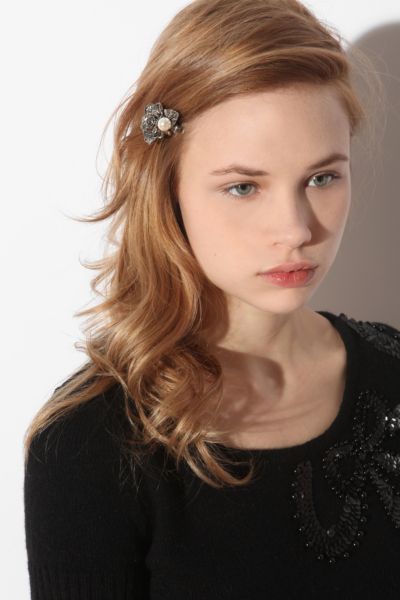Today's bling, from Urban Outfitters, is sweet and pretty and could really add some polish to your look. This antique pearl and metallic flower clip is very feminine and soft, but also has a vintage vibe thats just a bit sexy and "pin-up" like. We'd wear it with a black a-line cocktail dress to a holiday party or with a more casual skinny jeans and chunky sweater looks all winter long. At only $12 its is a stylish steal!